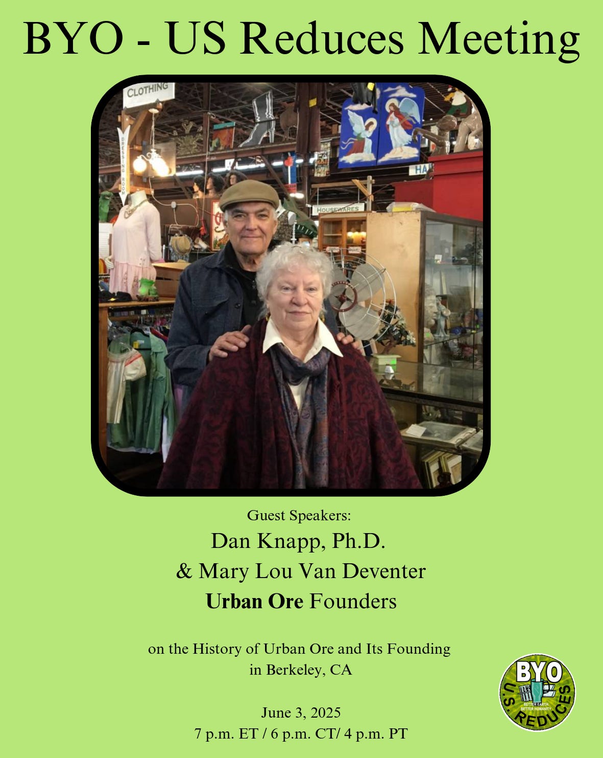 Happy Earth Day to everyone! We imagine you’ re staying busy with local efforts this month. As you pause with a cup of tea or coffee with your BYO mug, we invite you to read through this newsletter and mark your calendars for Tuesday, June 3—we’re thrilled to be joined by the legendary founders of Urban Ore, the iconic reuse center/thrifty store in Berkeley, CA that helped shape the reuse movement long before “zero waste” became a buzzword. They’ll share stories from over four decades of visionary, principled work—including how Urban Ore became financially self-sustaining without relying on grants or corporate funding. This is a rare opportunity to learn from true pioneers who’ve walked the walk since the beginning.