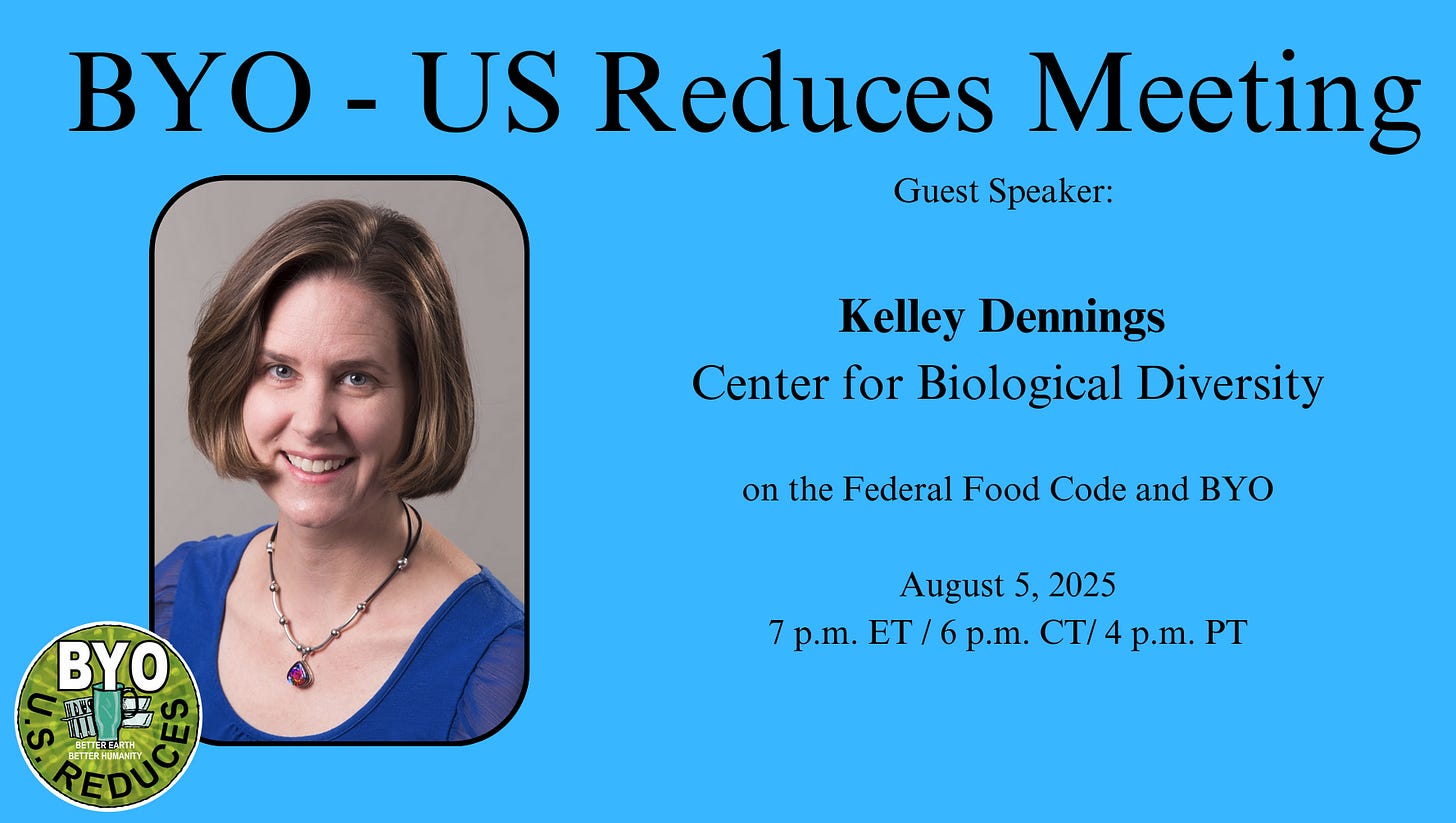 Our Local BYO Acion Spotlight this time will be from Austin, TX this time! Nancy from Austin Reduces aka Austin Reuse Coalition will give us a short presentation on what’s happening on the ground there followed by Q&A!